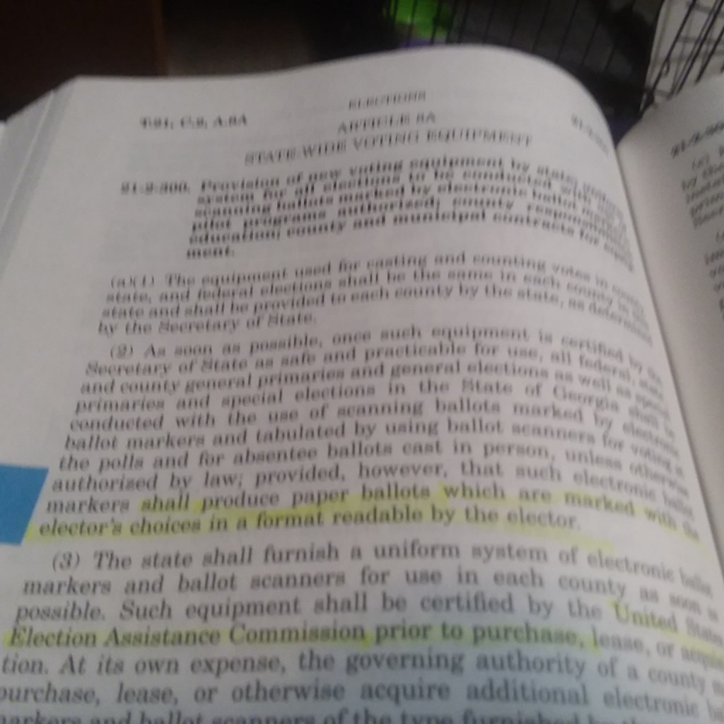 The election was illegal on illegal machines. Dominion producing the qr code that voters cant verify and is what is counted is illegal. Dominion is for the sole purpose of rigging elections. To check ballots they would need to verify the qr code against what the print command says. We have to get rid of Dominion because it is illegal and kemp and raffy for buying and using an illegal voting system. I wonder what the prison sentence is for using an illegal voting system.